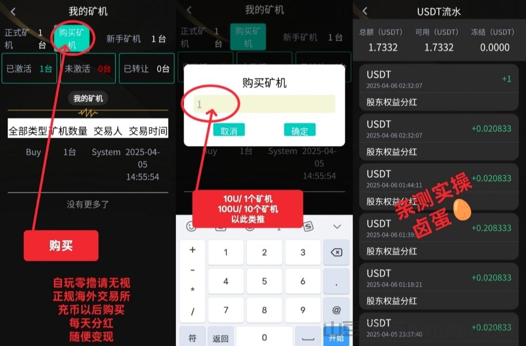 新手建议先完成实名认证获取基础算力。小额投入10U购买矿机实现算力十倍增长。重点发展直推团队,享受长期被动收益。每日记得手动领取挖矿收益,避免遗漏。