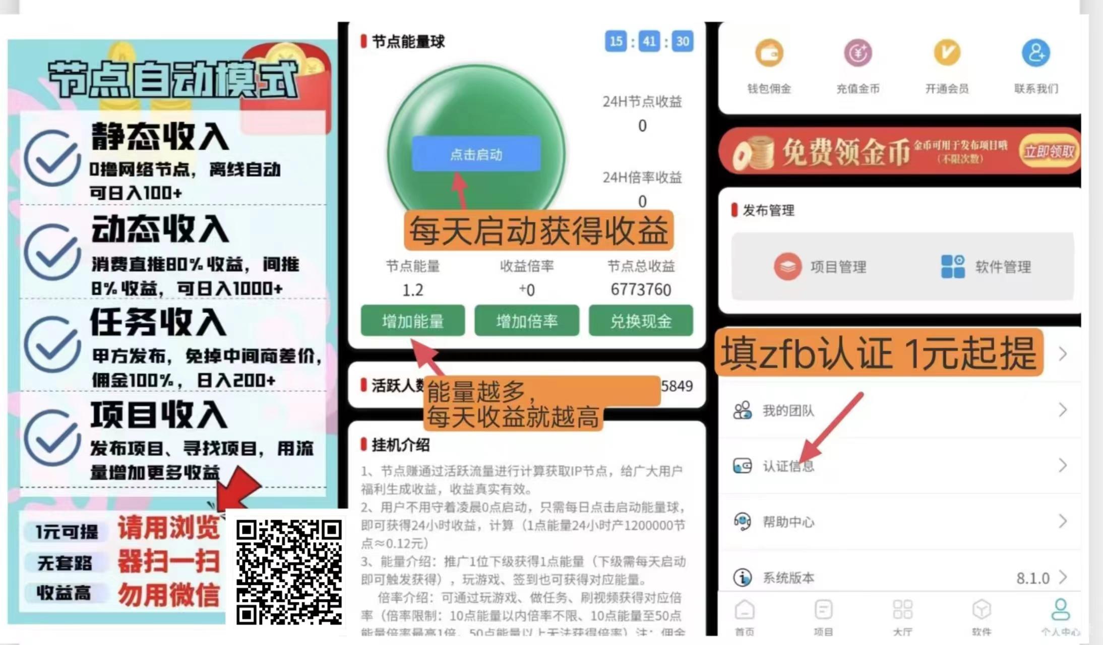 零撸每天获得能量增加收益,启动获得收益